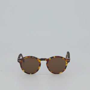 Indulge in the timeless sophistication of Italian handiwork with our iconic ACE sunglasses. Expertly crafted with plant-based Italian "tortoise" acetate from Mazzucchelli, they boast hand-braided leatherwork from Mexico and brown lenses that offer 100% UVA and UVB protection. With a reduced light transmission of 75%, these sunglasses provide an optimal balance of luminosity and comfort. The exquisite braided leather is meticulously handmade in Mexico using top-quality sheepskin. This versatile design is perfect for both men and women. One size fits all.
