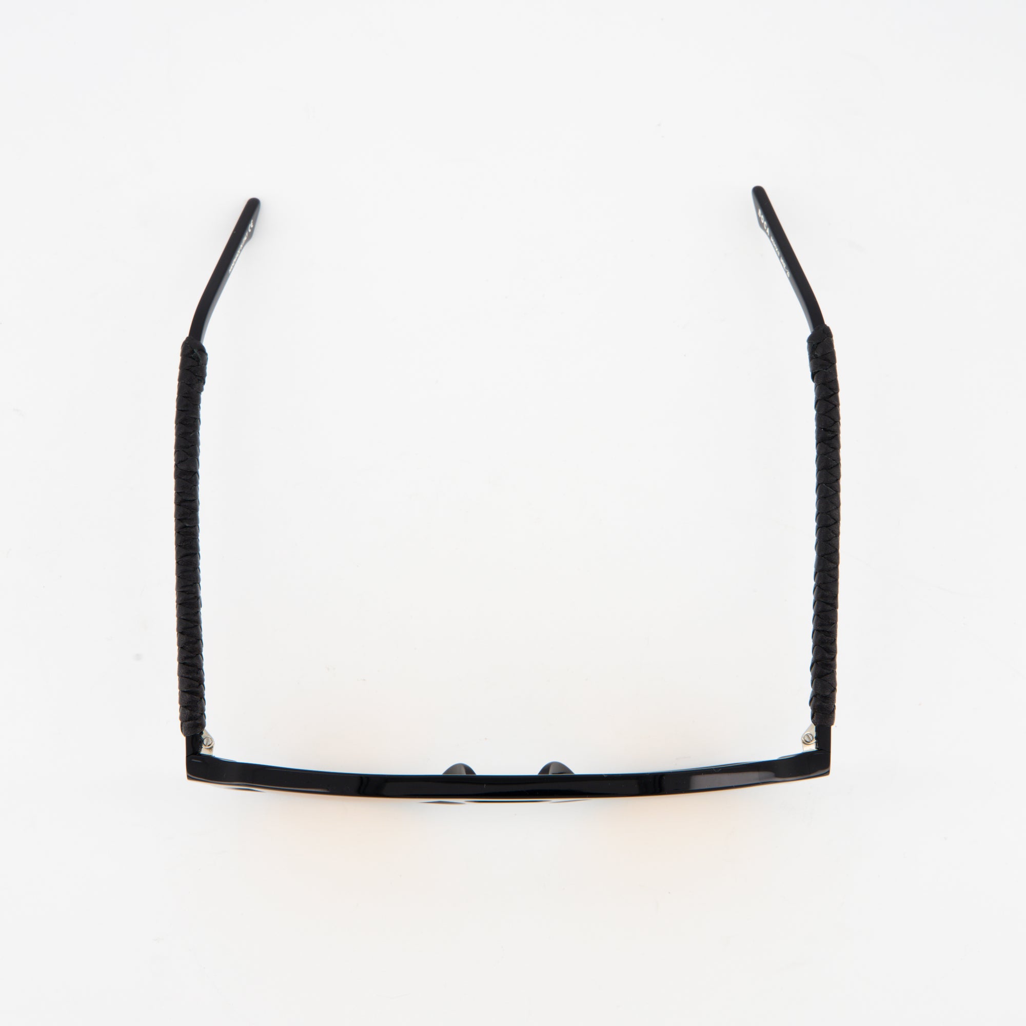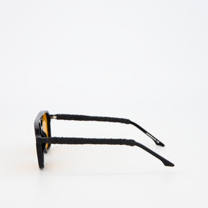 Made from premium black acetate, the frame’s sleek silhouette is elevated by hand-braided leather temples — a signature touch of craftsmanship that combines durability with unique style.