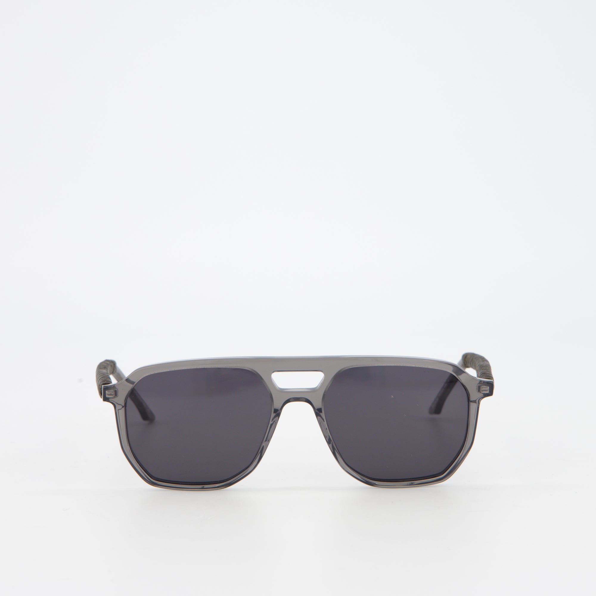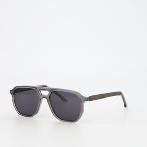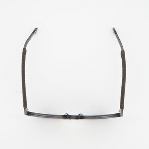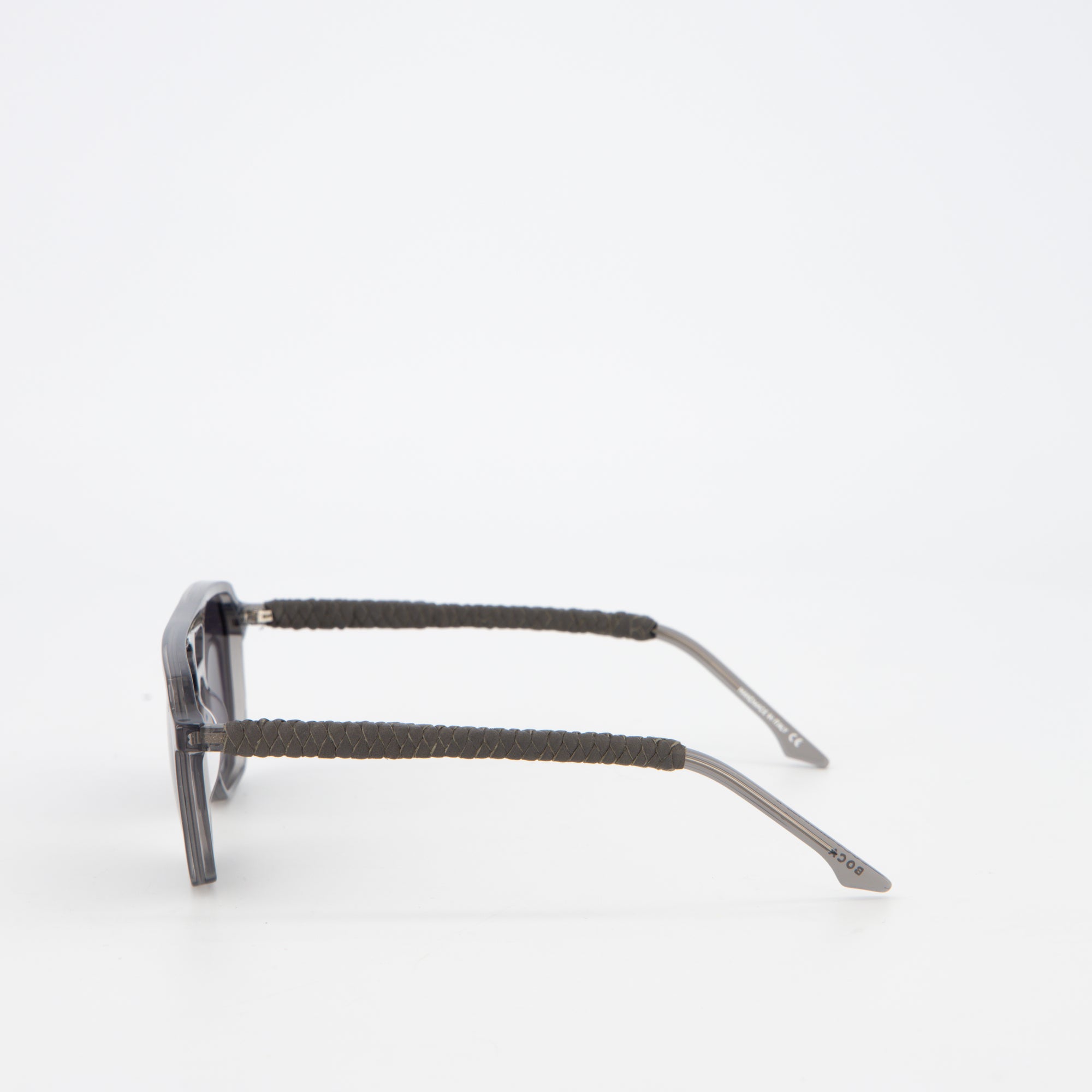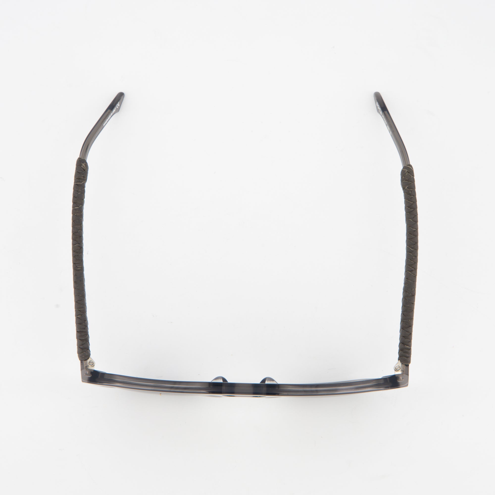 Made from premium grey acetate, the frame’s sleek silhouette is elevated by hand-braided leather temples — a signature touch of craftsmanship that combines durability with unique style.