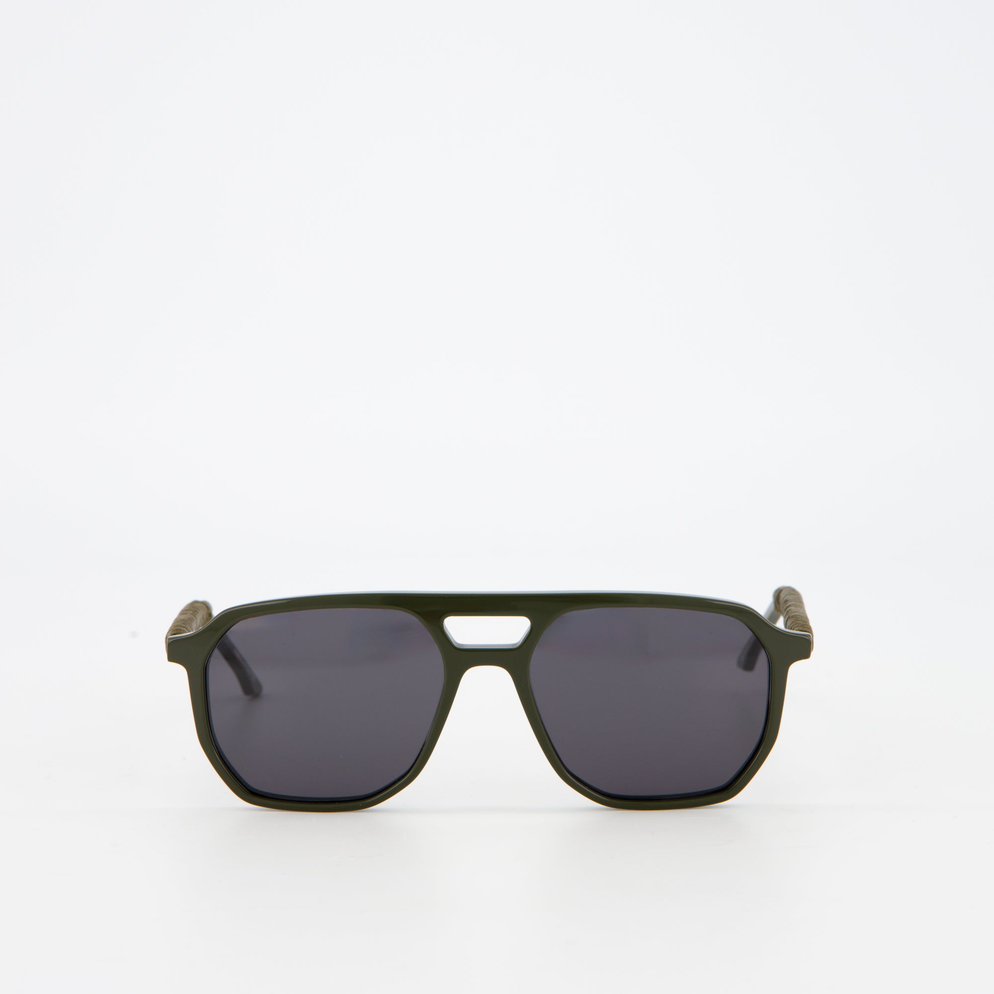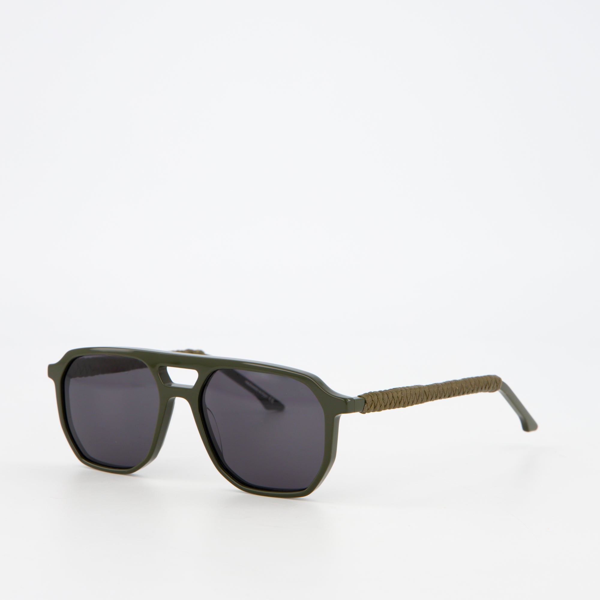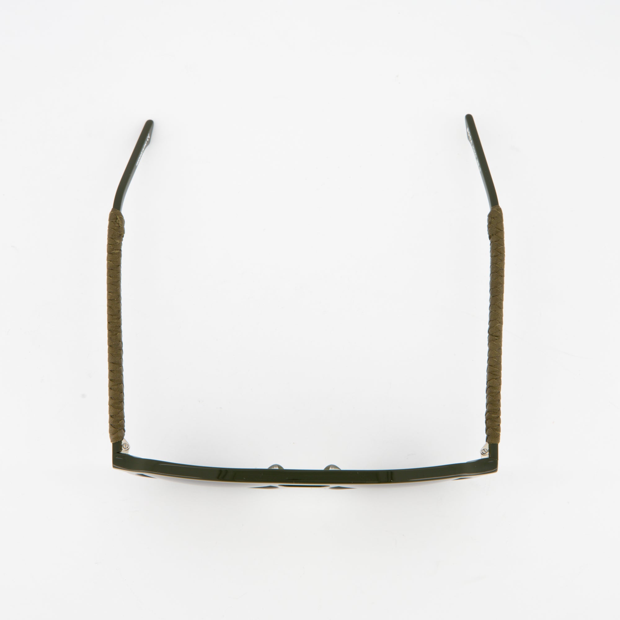 Made from premium matte olive acetate, the frame’s sleek silhouette is elevated by hand-braided leather temples — a signature touch of craftsmanship that combines durability with unique style.