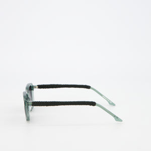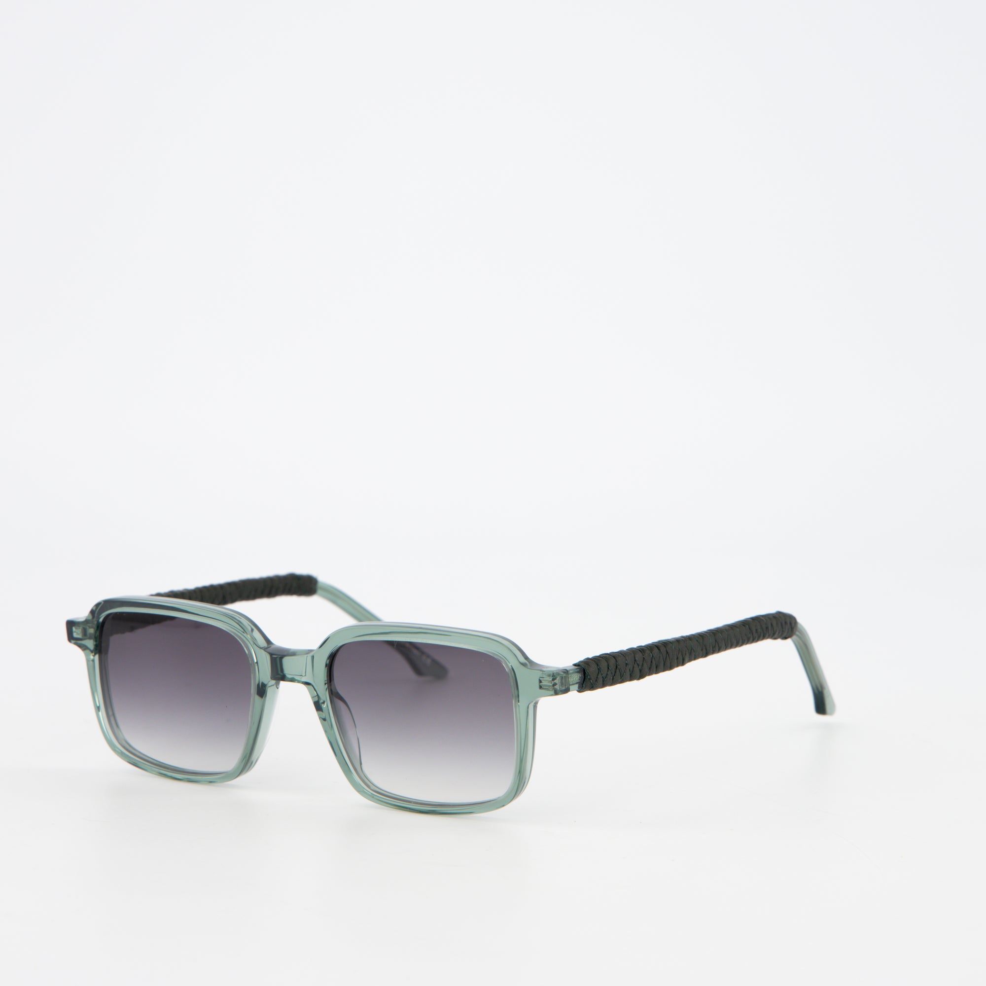 Crafted from plant-based “mint” acetate by Mazzucchelli, each frame embodies the highest standard of Italian artistry. The look is elevated with intricate hand-braided leather details, meticulously made in Mexico using the finest sheepskin.