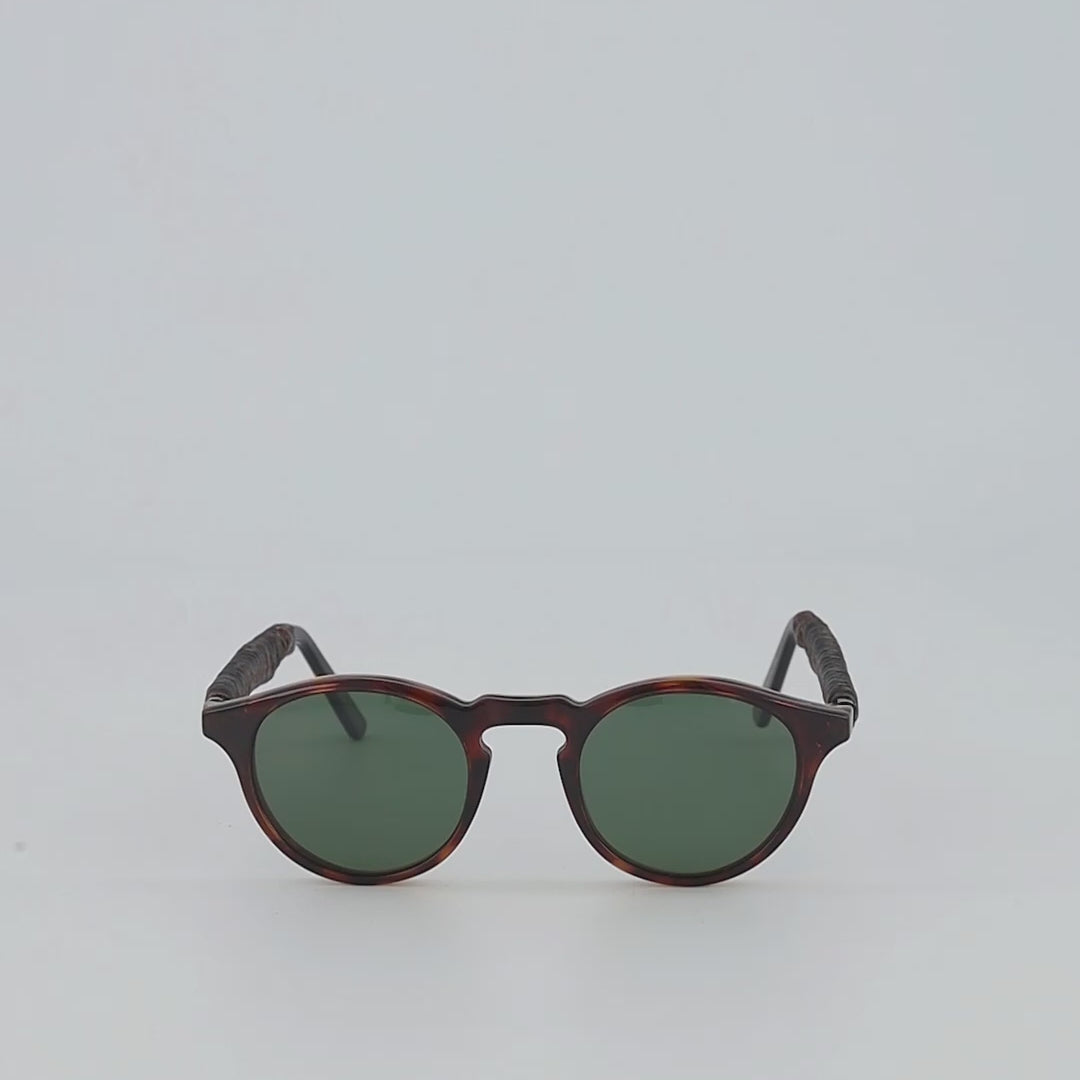 Italian-crafted from robust tortoise cellulose, these magnetic clip-on glasses instantly change your eyeglasses to polarized sunglasses. Featuring green lenses that reduce light transmission by 75% for unbeatable brightness, these glasses shield you from UVA and UVB rays with 100% protection. The beautiful braided leather work is handmade in MEXICO using the best sheepskin. One size fits most.