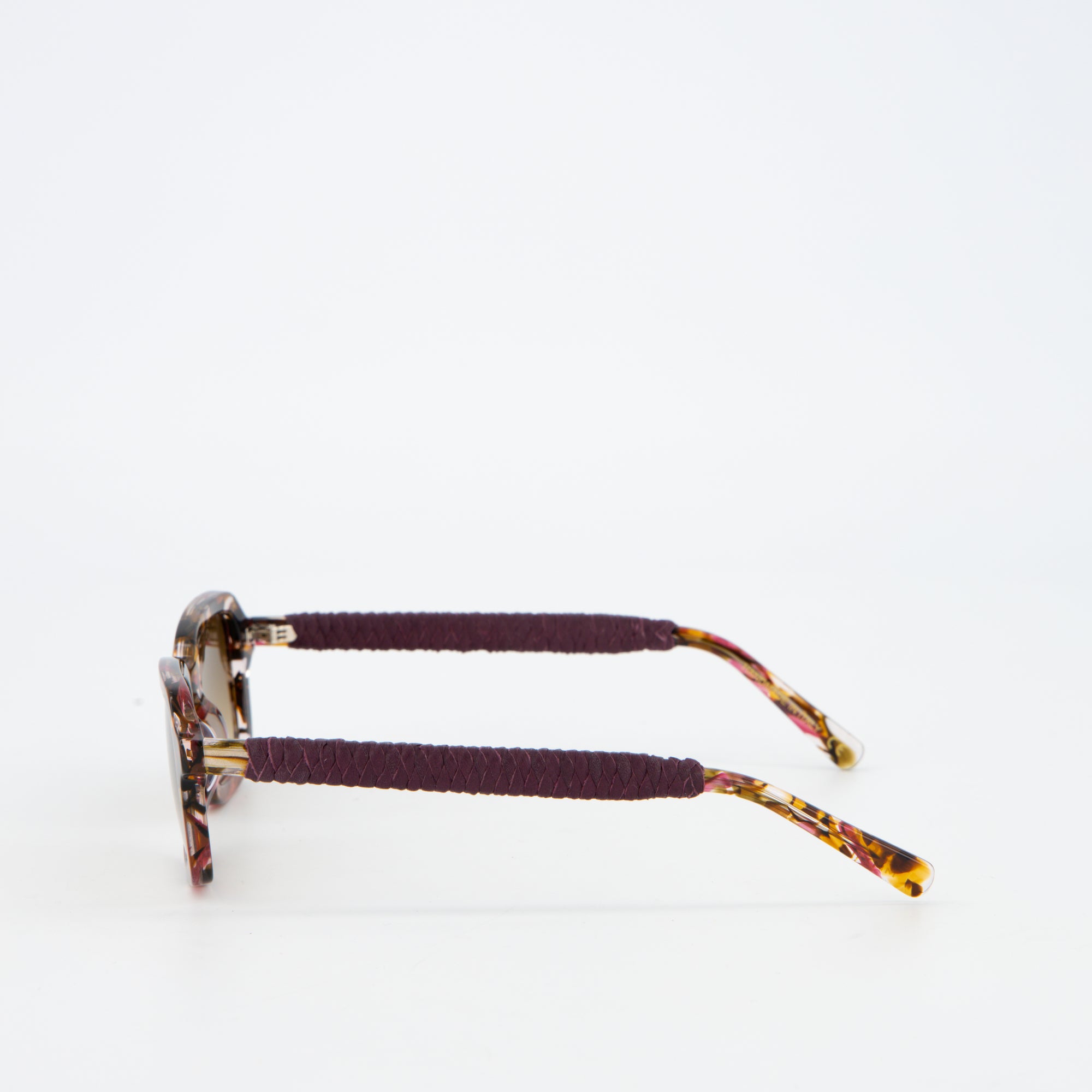 Experience the classic sophistication of Italian design with our Cleo sunglasses. Constructed with Mazzucchelli's plant-based "cherry ambar" acetate, each frame is adorned with finely-woven Mexican leatherwork. These frames are enhanced with gradient light brown lenses that provide 100% UVA and UVB protection and specifically reduce light transmission by 60% - perfect for overcast and low-light conditions.