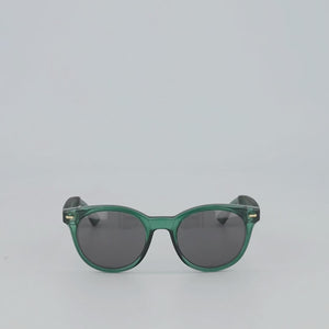 Crafted in Italy, this Classic Gray model features a durable satin green hypoallergenic  Swiss TR90 frame and protective gray CR39 lenses. Designed with a 75% reduction in light transmission, they provide exceptional comfort in bright conditions while shielding 100% from harmful UVA and UVB rays. Expertly crafted with braided leather details using high-quality sheepskin from Mexico, this luxurious model is perfect for the fashion-forward man.
