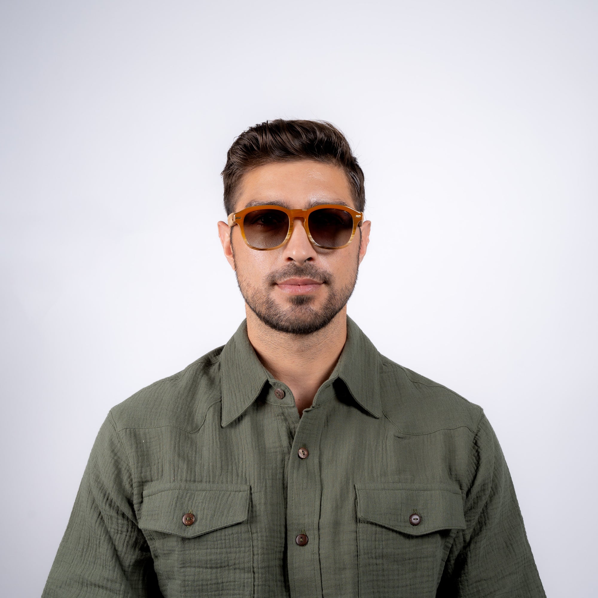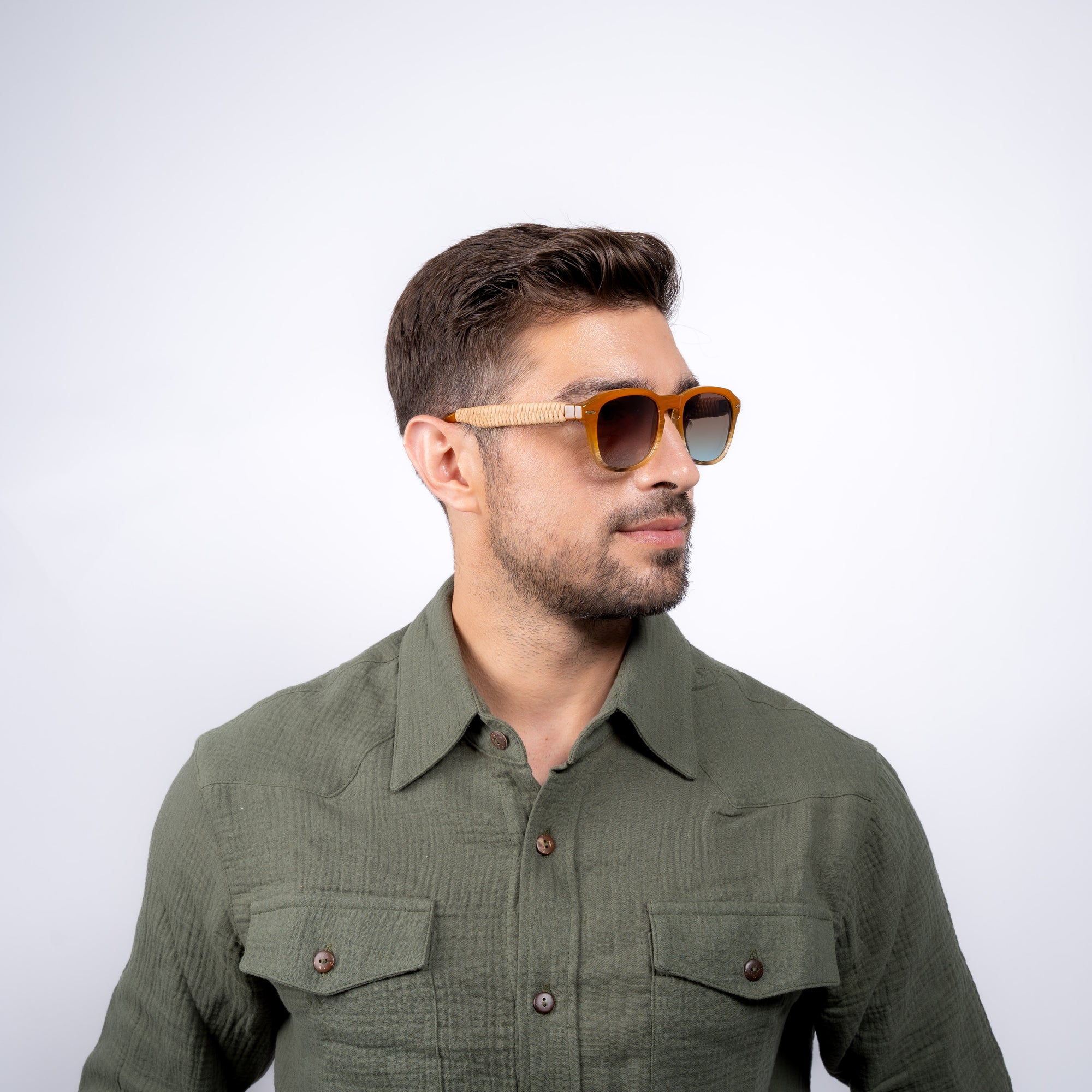 *Our high-quality light brown leather wrapped sunglasses are designed to evolve with wear, gradually developing a darker, richer patina over time. This natural aging process not only adds character and uniqueness to your sunglasses but also enhances their overall aesthetic appeal. If you think you won't like with the natural darkening process of the light leather used in our products, we recommend considering our dark leather sunglasses as a stylish alternative.