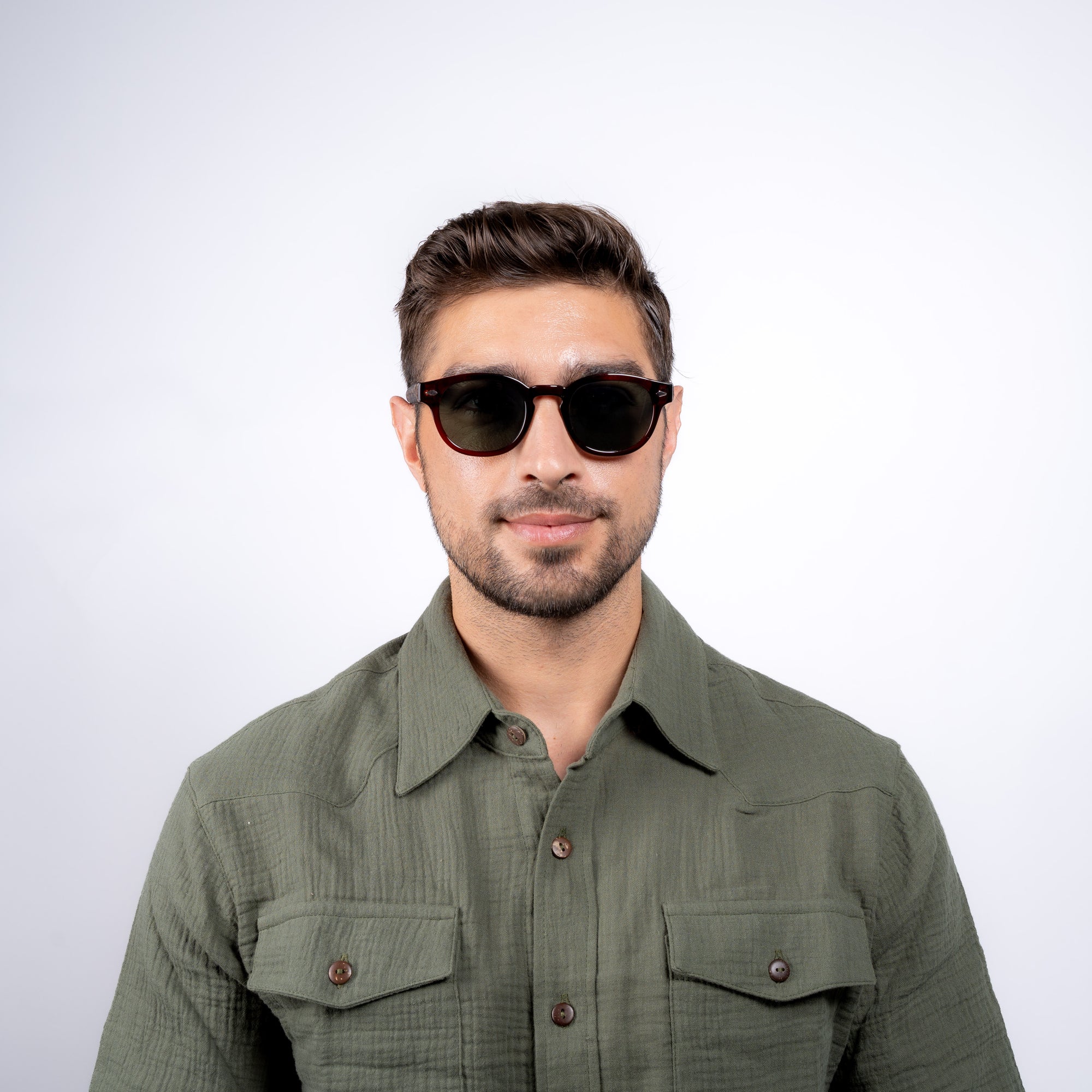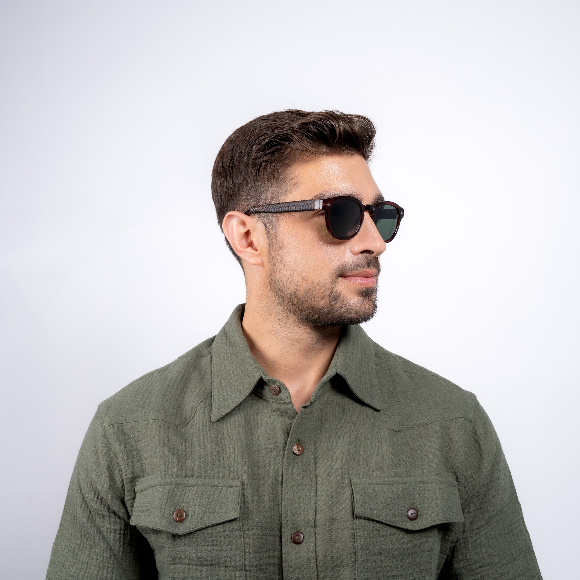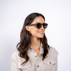 Savor the glitz of the Italian-made Roger design, which features a striking tortoise Swiss TR90 frame and opulent brown CR39 lenses. With a 75% light reduction for easy wear on sunny days, these stylish shades give complete protection against damaging UVA and UVB radiation. Premium Mexican sheepskin is used to create the finely woven leather details on these sunglasses.