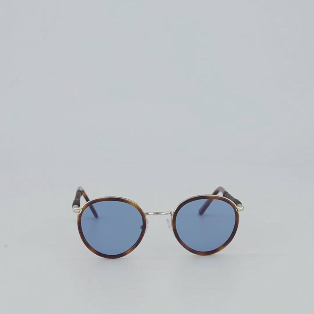 Indulge in the luxury of Tropez Blue eyewear, crafted with a refined frame of durable metal and adorned with tortoise acetate rims and temple tips. The light blue lenses reduce brightness by 65% for ultimate comfort, while certified CR39 lenses provide 100% protection from harmful UVA and UVB rays. Handmade with the finest sheepskin in Mexico, the beautiful braided leather work adds a touch of elegance. This unisex model is one size fits most.