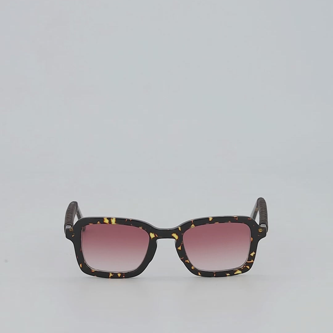 Experience the classic sophistication of Italian design with our Cleo sunglasses. Constructed with Mazzucchelli's plant-based dark tortoise acetate, each frame is adorned with finely-woven Mexican leatherwork. These frames are enhanced with gradient light purple lenses that provide 100% UVA and UVB protection and specifically reduce light transmission by 60% - perfect for overcast and low-light conditions.