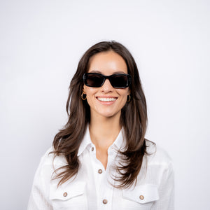 Introducing the opulent Aura frame, crafted in Italy from robust satin black Swiss TR90. Equipped with CR39 lenses, these sunglasses provide complete protection from UVA and UVB rays. The sophisticated grey lenses reduce light transmission by 75%, ensuring comfort even in bright conditions. Featuring exquisite braided leather detailing, expertly crafted by skilled artisans in Mexico using premium sheepskin, these sunglasses are designed for the discerning woman. One size fits all, making them a timeless addition to any collection.