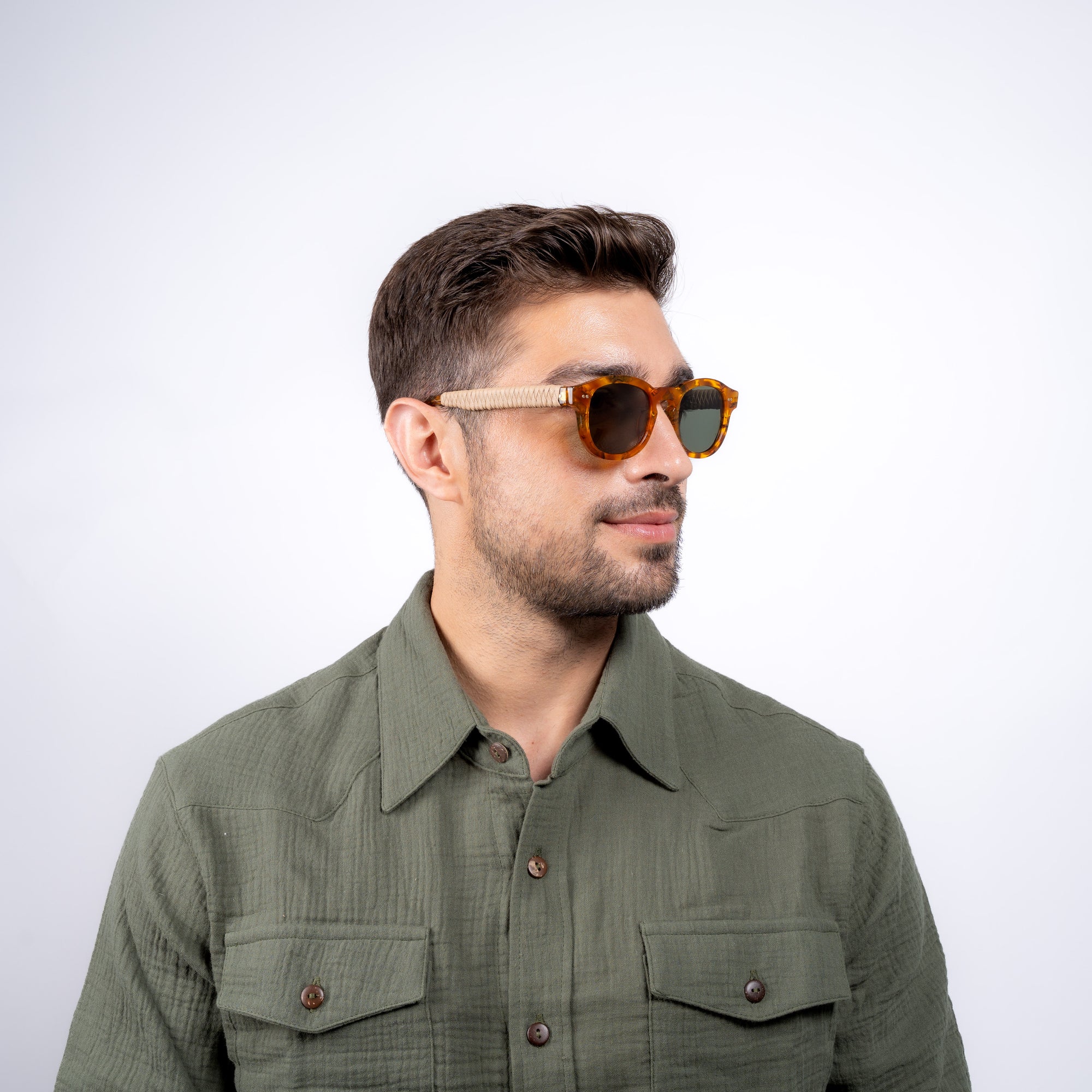 Indulge in timeless sophistication with our Belgi Sunglasses. Handcrafted in Italy with "amber" Mazzucchelli acetate and hand-braided leather from Mexico, these sunglasses exude luxury and elegance. Featuring 100% UVA and UVB protection, you'll also experience reduced light transmission for ultimate comfort. Versatile and unisex, these sunglasses are a must-have for any fashion-forward individual.