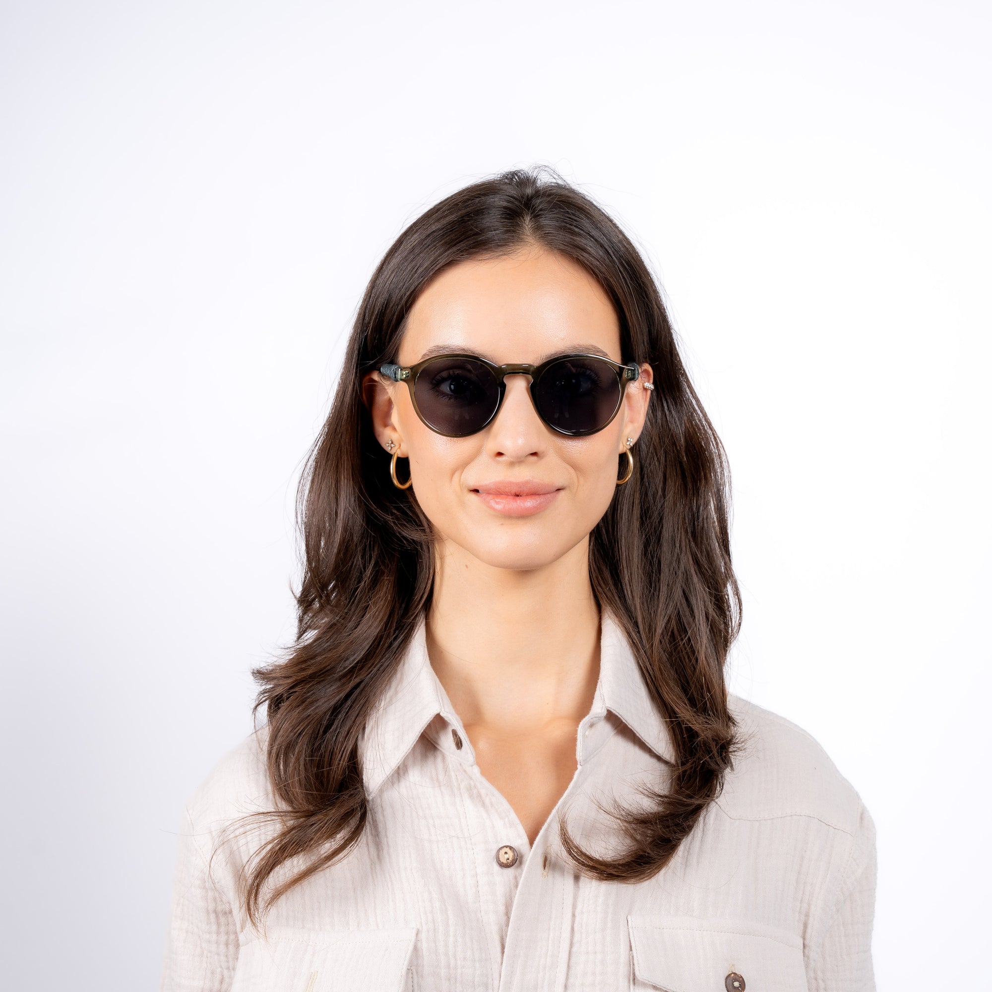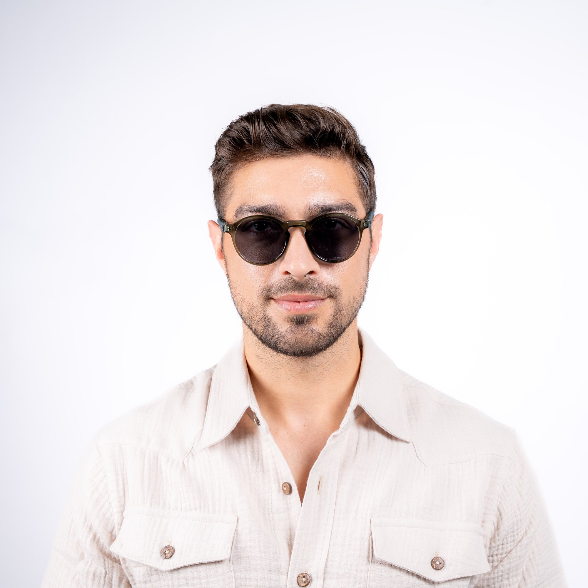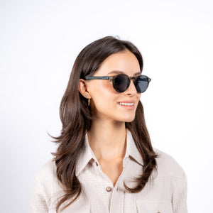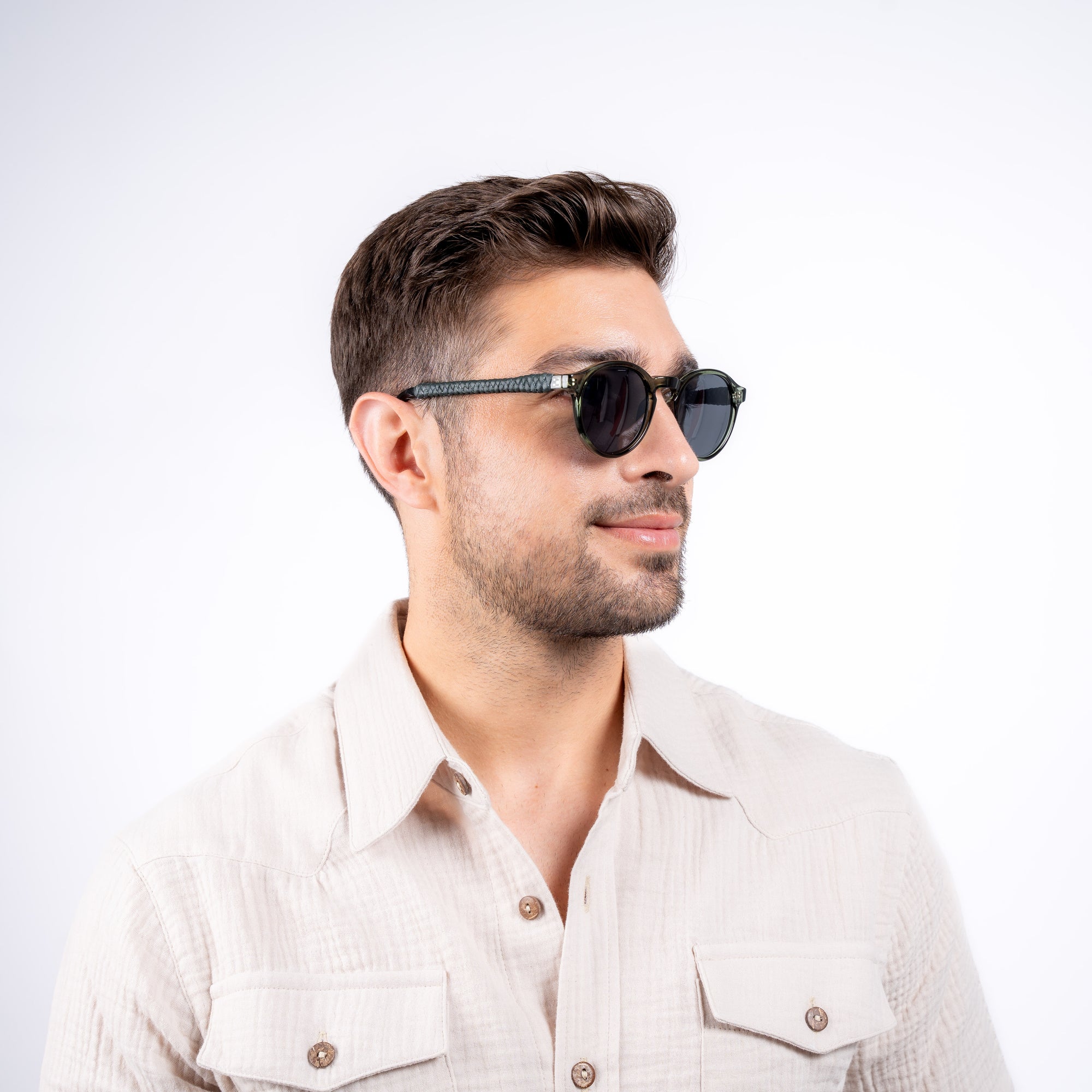 Crafted in Italy from durable and light navy satin Swiss TR90 frame, with a stylish made in Mexico braided leather design using premium sheepskin. Complete with grey lenses that reduce light transmission by 75% and provide 100% protection against UVA and UVB rays. This unisex design is one size fits most.